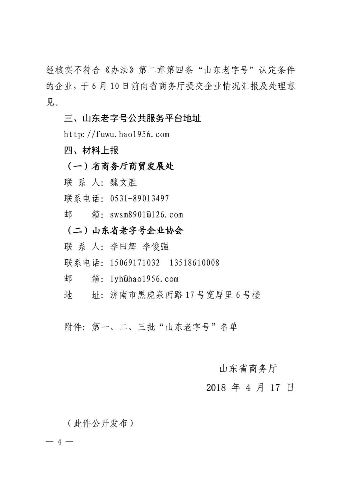 附:山東省商務(wù)廳《關(guān)于組織開展第五批“山東老字號(hào)”認(rèn)定暨動(dòng)態(tài)考核工作的通知》全文