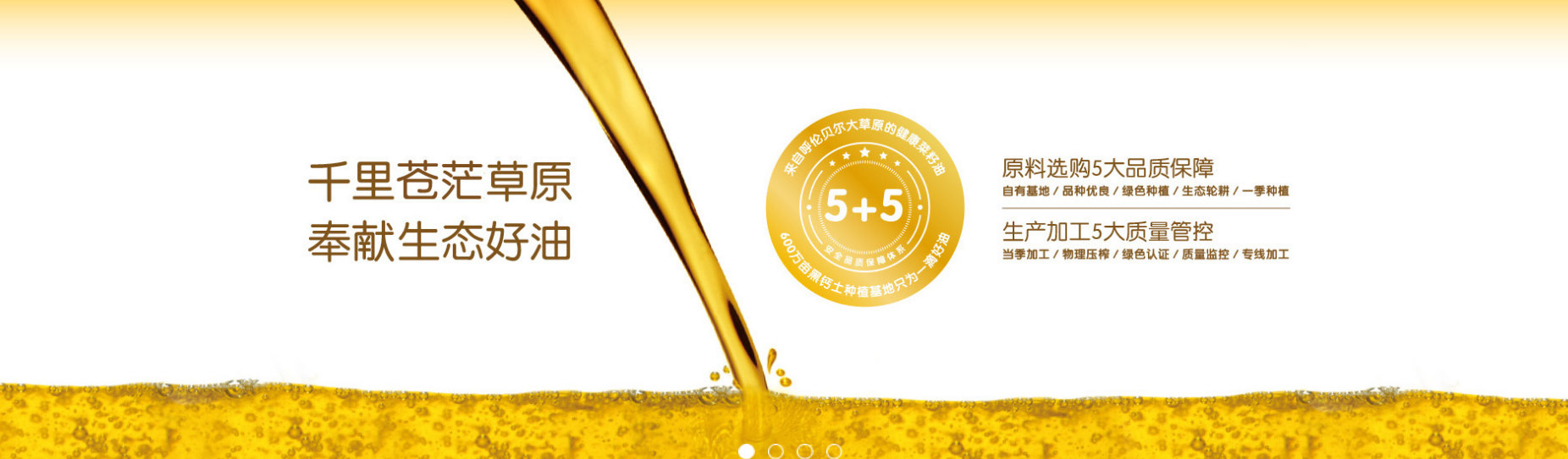 呼倫貝爾品生態(tài)-蒼茫謠芥花油是公司與中國農(nóng)科院共同研發(fā),精選綠色種植基地雙低油菜籽作為專用原料,采用全自動化控制物理壓榨生產(chǎn)工藝精制而成,生產(chǎn)過程綠色無污染、無任何添加劑,確保產(chǎn)品更為的綠色、純凈、健康的優(yōu)秀品質(zhì)。產(chǎn)品亞麻酸含量為8%、亞油酸含量為17.5%、不飽和脂肪酸總量高達92.8%,在國內(nèi)享有“東方橄欖油”之美譽。