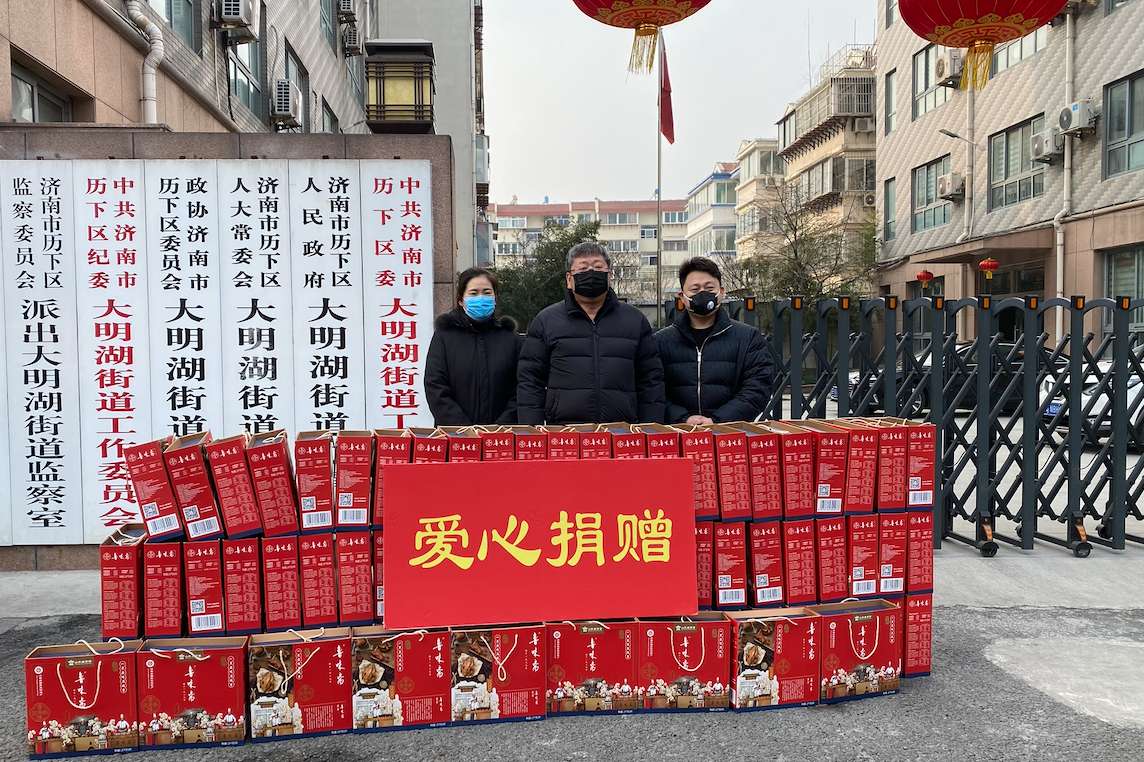 2月8日下午,山東老字號(hào)濟(jì)南魯味齋食品有限責(zé)任公司向大明湖街道捐贈(zèng)價(jià)值2萬(wàn)元的物資,慰問(wèn)一線防疫工作人員,為防疫抗疫工作貢獻(xiàn)一己之力。